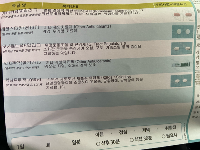 - 신경과·신경외과의료상담Q. 렉사프로정10밀리 우울증약 먹으면 자꾸 약에 의존할까요?위내시경에서 아무것도 안 나오고 건강하다는데 자꾸 속쓰리고 머리아프고 그래서 다시 병원에 갔는데 스트레스 받는거 있냐해서 받는지 안 받는지 잘 모르겠다 했거든요 그래서 잘 안 나으니까 실험적으로 항우울증약을 준다고 했어요. 근데 엄마는 심리적인거면 안 먹고 한번 저 약을 먹으면 계속 저 약에 의존 할거라고 먹지말라는데 안 먹는게 좋을까요..? 저 약에 대해서 자세히 알려주세요 ㅜ이미지가 포함된 질문이에요.