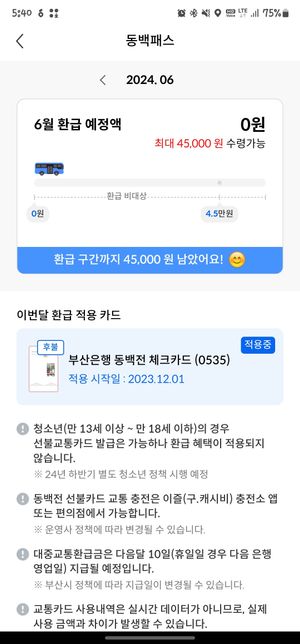 - 생활꿀팁생활Q. 동백패스 환급 문의드려요?????동백패스 환급내용이 궁금합니다.제가 6월 1일 오늘 동백패스카드로지하철 2회이용 3200원을 사용하였는데 동백전 어플 동백패스에 들어가면환급까지 41,800원 이라고 되있어야하는데 환급까지 45.000원으로 그대로 아무 변동이 없네요?? 왜그런건가요