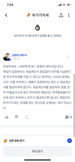 - 부가가치세세금·세무Q. 청소업체 거래처 세금관련 문의드립니다해당 점포는 술집입니다.저는 청소업체입니다.해당 점포에서 세금계산서를 발행하지 않아도 된다고하네요.본점도 장사가 잘되고 여기 지점은 잘 모르겠지만세금계산서를 발행해주지않아도 된다는것의 의도는 무엇일까요?만약에 세금계산서를 발행해주지 않고 부가세를 안주려는거면제가 현금영수증 자진발급하면저만 손해나는거 아닌가요?ㅠ왜 세금계산서를 발행해주지 않아도 된다고 하는걸까요 그 저의가 궁급합니다 세금적인 측면에서요