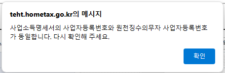 - 종합소득세세금·세무Q. 사업소득 종합소득세 신고하려는데, 사업소득지급명세서 조회가 안되거나 기납부세액 작성이 안되는데 어떻게 하면 될까요?안녕하세요.종합소득세 사업소득을 신고하려는데, 사업소득지급명세서가 조회가 되는 것도 있고, 조회가 안되는 것도 있거든요. 조회가 안되는 사업장에서는 별도로 사업소득 원천징수영수증을 주셔서 해당 금액을 수기로 추가 입력했습니다.그리고 조회가 되지 않더라도 이미 3.3% 공제 후 지급 받아, [기납부세액>원천징수세액] 탭을 눌러서 입력하려고 하면 아래와 같은 창이 뜹니다.어떻게 하면 될까요? 조회가 되지 않아 사업소득 원천징수영수증을 보고 수기로 입력하는데 기납부세액 작성이 안됩니다.