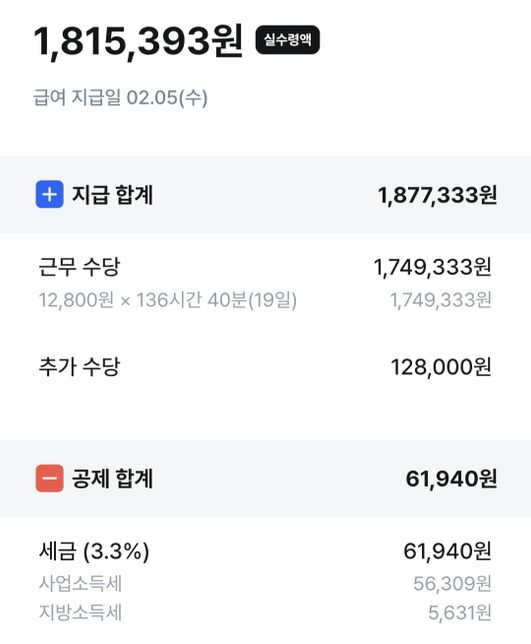 - 임금·급여고용·노동Q. 알바 퇴직금 기본급에 식대 포함 질문합니다퇴직금 계산을 하려고 고용노동부 홈페이지에 들어갔는데 일단 추가 수당을 보시면 풀타임할 때 나오는 식대입니다. 일하는 직원들 모두 풀타임 하면 받고 월급나올 때 포함해서 같이 받는데 이경우에 퇴직금 계산기에 어떻게 입력을 해야하는지 궁금합니다.