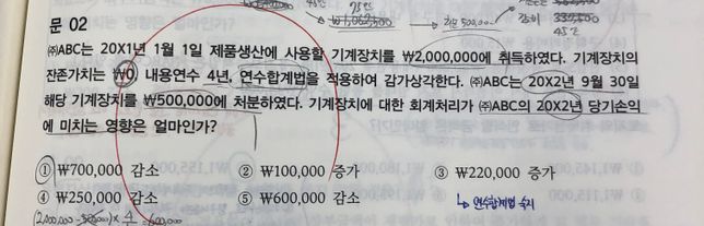 - 공인회계사 자격증자격증Q. 회계문제 풀다가 궁금한게 생겼어요!이 문제에서 X2년 당기손익에 미치는 영향이 ₩700,000 감소라고 해요. 그런데 X2년에 기계장치 처분하고 받은 현금 ₩500,000은 왜 고려안하는지가 궁금합니다!