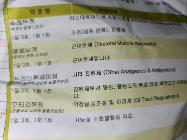 - 약 복용약·영양제Q. 겨드랑이 자상 및 타박상으로 인한 약 복용 주의사항 질문드려요겨드랑이 쪽 다쳐서 겨드랑이 가슴 힘 들어갈때마다 통증이 심해서 약 처방 받았는데 내일 모레 회식이라 하루 정도만 술 조금 마실거 같으면 회식말 하루만 약 안먹으면 되나요? 시간상 24시간 지나고 마셔도 되나요 그러고 다음날 다시 역 복용 해도 되는지그리고 현재 영양제도 복용즁인데밀크시슬 멀티비타민미네랄마그네슘비타민c코엔자임q10 먹는데 같이 먹어도 0