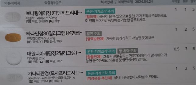 - 약 복용약·영양제Q. 처방약 동시복용 가능한지 궁금합니다어지럼증으로 인해 처방받은약과 몸살약과의 동시복용이 가능한지 궁금합니다첫번째사진이 내과이고 두번째가 신경과 처방약입니다현재 오전에 코막힘, 목통증(침삼키면 따끔)이 있고거의 하루종일 어지럼증이 있습니다약사님들 알려주세요!!!