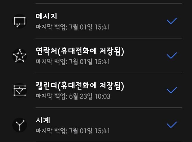 - 생활꿀팁생활Q. 폰 캘린더 백업 날짜 갱신 하는 법 알려주세요사진처럼 몇분전 백업을 하였는데 캘린더만 백업 날짜 갱신이 안되고 있어요.. 이거 해결하는 법 아시는분? 알려주세요 (*´-`*)ノ