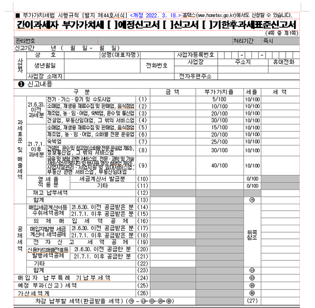 - 종합소득세세금·세무Q. 간이과세 무실적신고 서류 작성방법이 궁금해2023.1 간이과세자로 사업자를 냈지만 2023.4일반과세자 전환했어요.2023.1-3까지 소득은0원입니다.2023. 4 현재 부가세신고를 해야한다고 하는데요..1~3월까지의 기간에 대해서 간이과세자 부가세신고를 하시면 되시고 실적이 없는 경우에는 무실적으로 신고하시면 된다고는 들었는데요...그래서 신고를 하려고 보니간이과세자-정기기간(폐업확정) 탭에 들어가서 신고하려니 폐업안했다고 해서 안되고이과세자-정기기간에서는 정기기간이아니라고 안되고대체 신고를 어떻게 하라는 건지 모르겠어요 ㅠ방법이 없는건가요?시간이 되지 않아서 세무서 방문은 어렵고요결국 서식작성후 우편으로 보낼거예요1. 작성서류느 ㄴ아래것이 맞나요?2. 무실적신고는 어떻게 쓰면되나요?(방법이나 사이트등) 상세히 알려주세요.