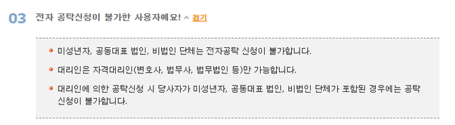 - 민사법률Q. 전자공탁가능여부 문의(법인인 경우 방법문의)이곳에서 도움을 많이 받아 공탁신청하려고 하는데요미리 감사드립니다.제가 진행하다가 또 문의사항이 있어서요전자공탁사이트 들어가니깐회원가입부터 막히네요 ㅠ법인인 경우 대리인이 직원으로 할 수 없나요?전자소송은 가능했던것같은데요....전자공탁사이트에서 법인명의로 회원가입하고는 할수 있는건가요?그외 도움될만한 정보 부탁드려요.