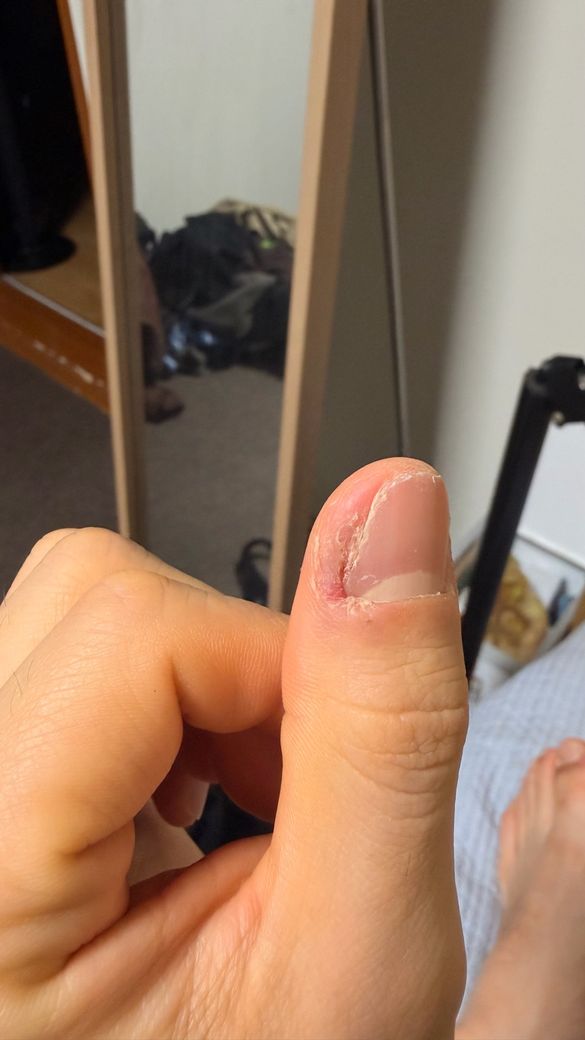 병태생리적으로는 손톱판과 손톱바닥 사이의 결합이 약해지면서 공기가 들어가 분리되고, 이 상태에서 반복적인 자극이 가해지면 손톱을 뜯게 되고 2차 염증과 통증이 발생합니다. 손톱이 “안쪽으로 들어가는 느낌”은 실제로 손톱이 짧아지는 것이 아니라, 노출된 손톱바닥이 각질화·염증화되며 그렇게 인지되는 경우가 많습니다.