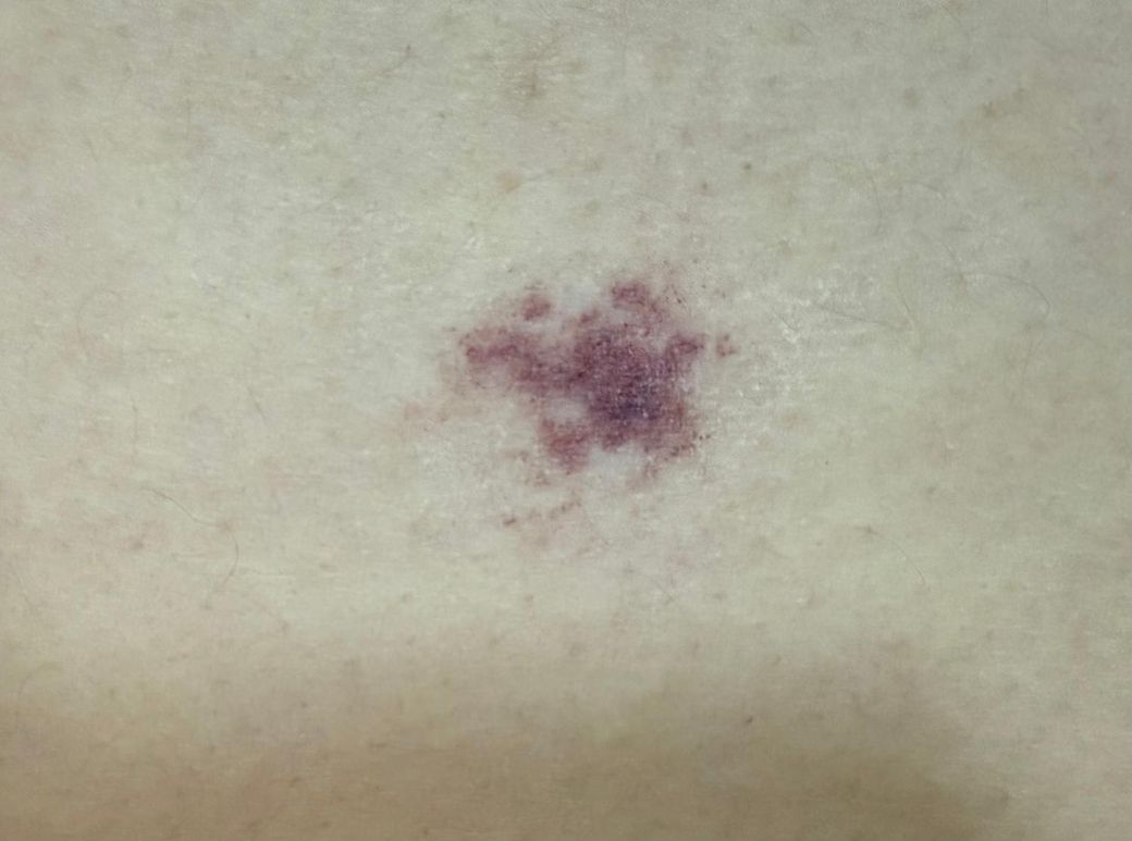 몇 달? 몇 년? 정도 되었는지는 정확히 모르겠으나, 작년에서야 팔뚝(밖 아래쪽)에서 첨부한 사진과 같이 검붉은 색을 띠는 반점을 발견했습니다. 점이라고 보기엔 색이 진하고 경계가 명확하지 않아 피부질환인지, 아니면 단순한 점인지 궁금합니다. 처음엔 멍인줄 알았으나 기간이 길어져도(몇달) 그대로 있음에 따라 아니라 생각됩니다.