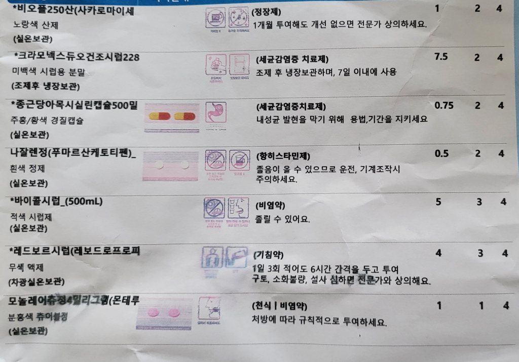 항생제를 먹으면 설사를 하는 아기들은 클라불란산을 적게 복용하는데 이런식으로 처방이 나옵니다.