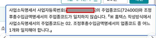 종소세 안내문을 받아보니 사업소득(프리랜서)이 있는데 조정후 총수입금액명세서에 사업장 업종코드엔 0원, 프리랜서 업종코드에 안내문과 동일하게 작성하여 신고하려니 경고가 뜨네요 업종코드가 잘못됐다고.. 어떻게 작성을 해야할까요?