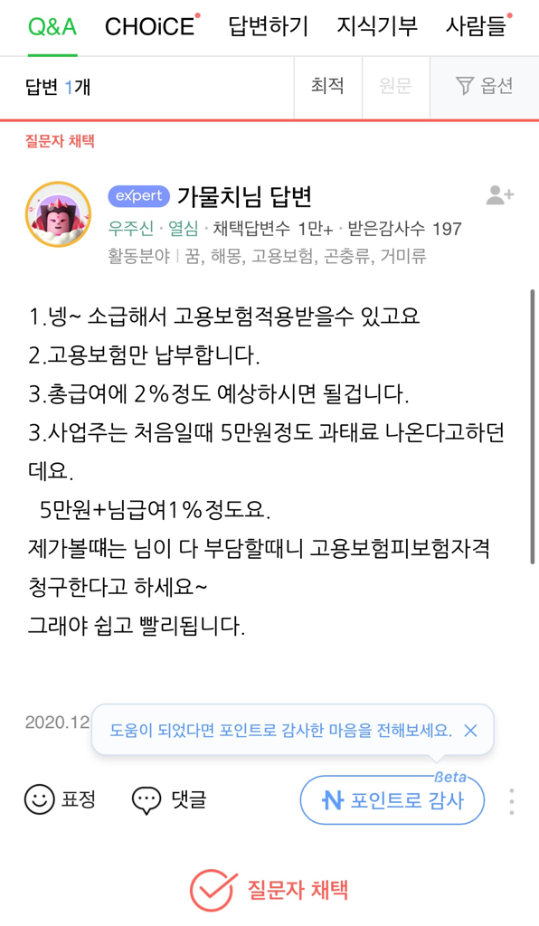 고용보험만 가능하다 하시는 분도 계시고..