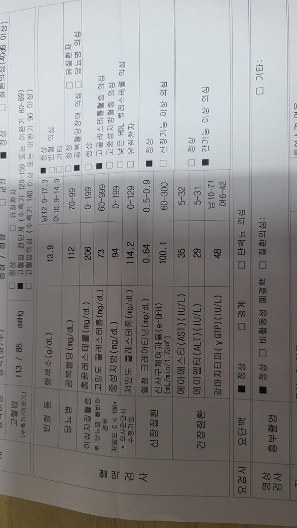 두달전 검사에선 모두 정상이었는데 국가검진에서 이렇게 나왔습니다
