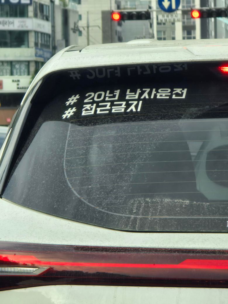 안녕하세요. 오늘 운전하다가 앞차의 뒷유리에 이런게 적혀 있었는데요.