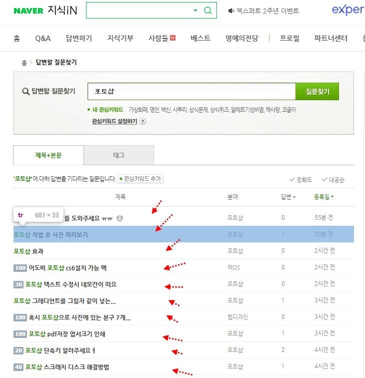 저 페이지에 1~10순위에 노출중인 질문들의 개별 class값을 알고싶은데요.
