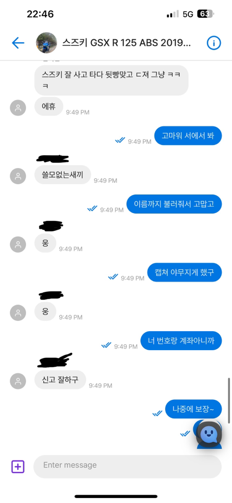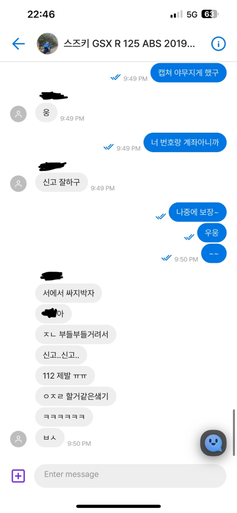 + 저도 상대분 이름 말하면서 욕은 안했고 "인생 그렇게 살지마아~~" 라는 말을 채팅으로 보냈습니다.