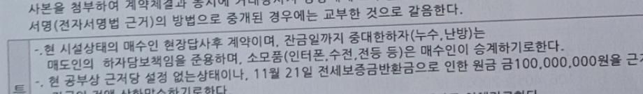 누수업체 소견서, 계약서 특약 첨부합니다