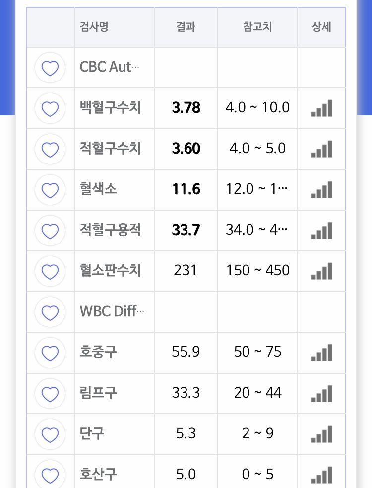 혈액검사결과 정상수치보다 낮은데 괜찮은건가요?