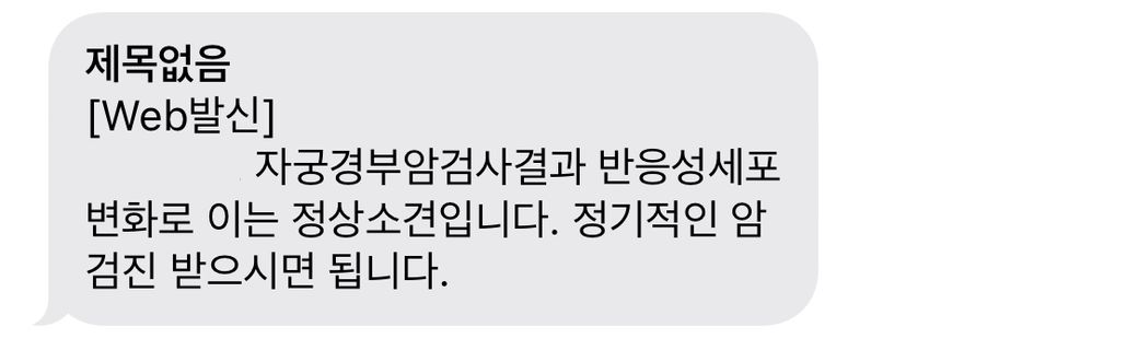검사하는 당일에도 피가 나고 있었고 검사 결과는 반응성 세포 변화라면서 크게 불편한 게 없다면 1년 뒤에 재검 오시면 된다고 했는데
