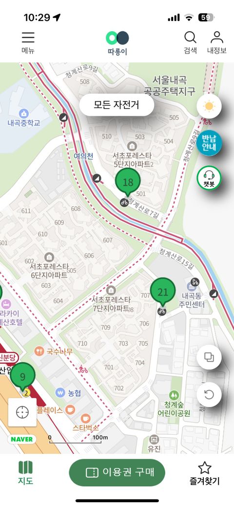 빨간점선도 따릉이가 갈수 있는 추천경로를 의미하는것으로 알고 있습니다. 점선으로 자전거타셔도 무관합니다.