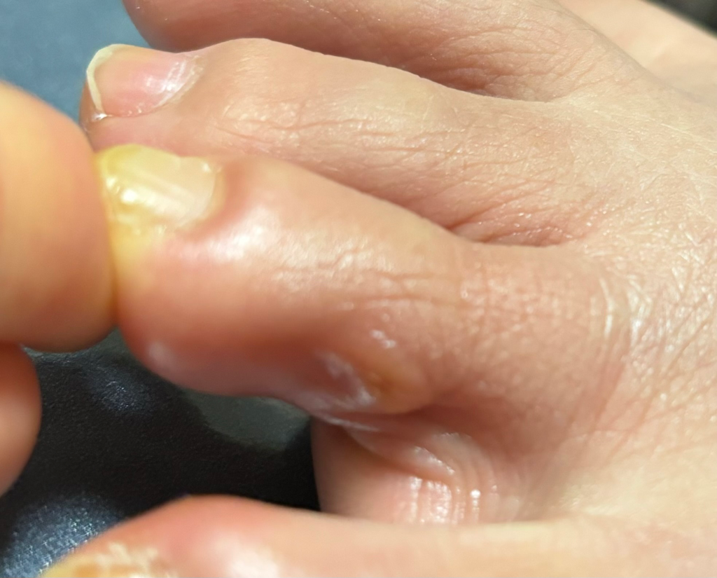 발가락 사이에 발생하는 이러한 증상은 흔히 무좀(진균 감염), 피부 마찰에 의한 물집, 혹은 옥수수와 같은 피부 문제일 수 있습니다. 장시간 걷기와 같은 활동으로 인해 발생할 수 있으며, 땀과 마찰이 빈번한 발가락 사이는 이런 문제가 발생하기 쉬운 환경입니다.