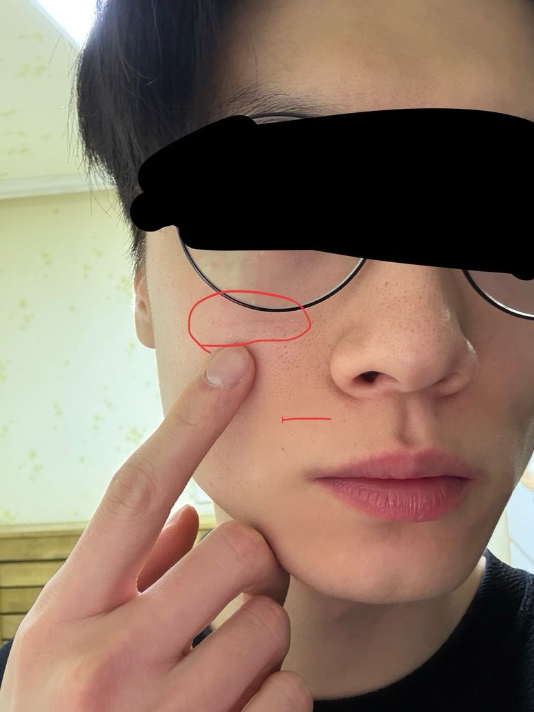 안녕하세요, 회사에서 업무도중 철사 끝부분에 얼굴을 긁혔습니다. 동그라미 친 상처가 흉터가 될까봐 걱정입니다. 지금은 외상연고제만 발랐습니다.