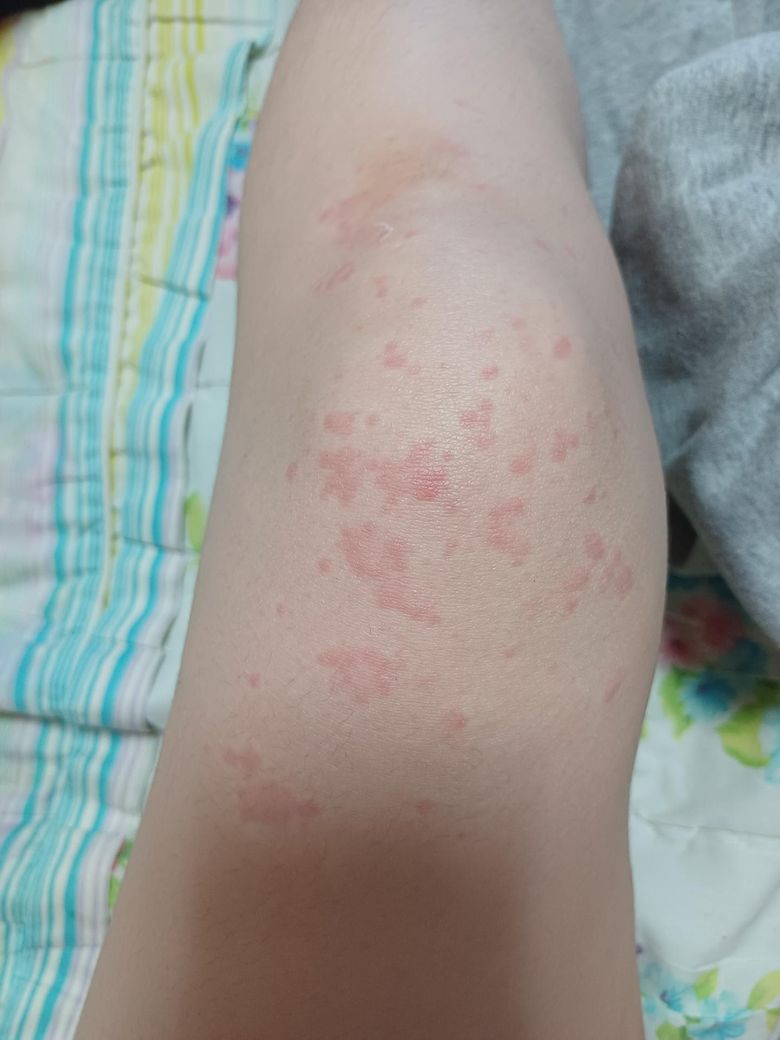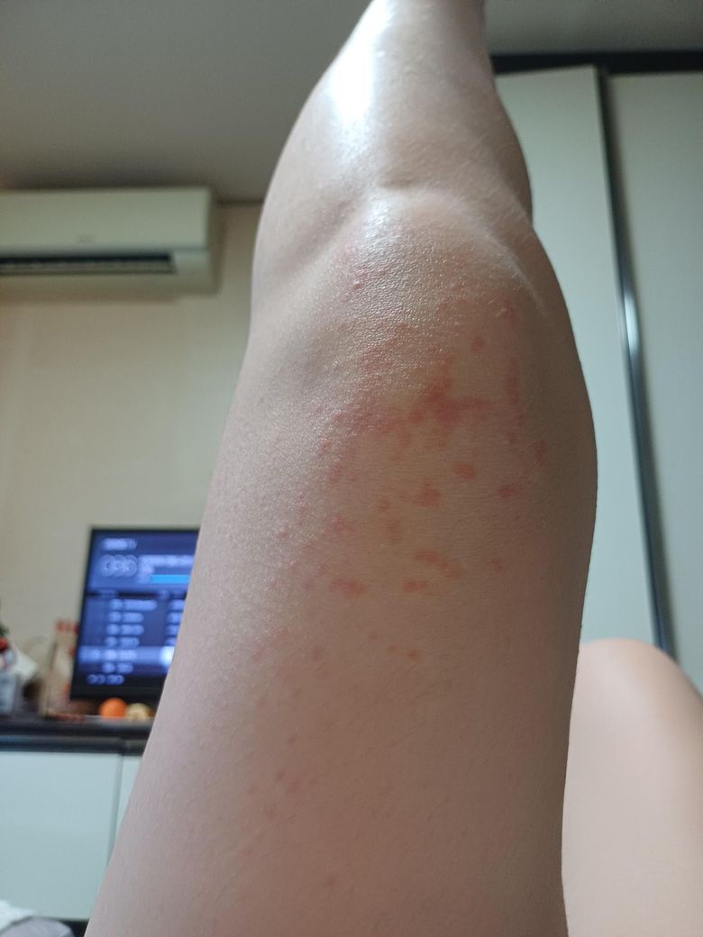 급성두드러기 이튿날 사진인데 다리로 옮겼어요
