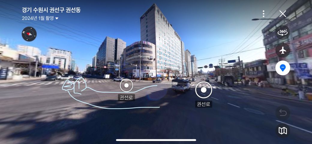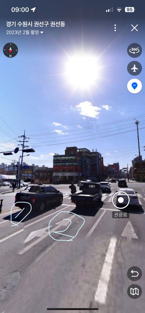 아래 도로에서 1차로 자회전차선 2차선 직좌 차선인데 자회전 시 직좌회전 차선이 2차로로 들어가는게 맞나요?? 1차로는 1차선으로