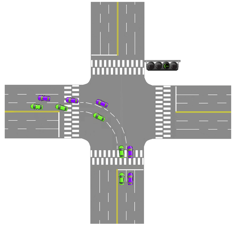 좌회전을 할 때 차선과 좌회전을 하기 위해서 서 있는 위치의 차선과 동일하게 움직이셔야 합니다.