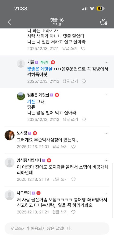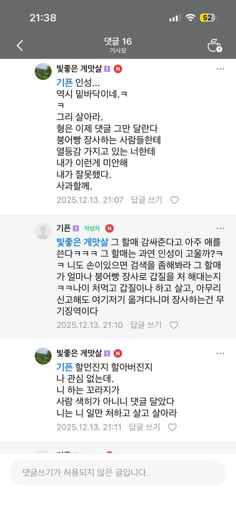 일단 서로 시비가 붙었던 것으로 볼 수 있는데 특정성이 인정되지 않아서 이를 전제로 하는 명예훼손이나 모욕의 성립이 어려워 보이고 위와 같은 표현만으로는 모욕에 해당한다고 보기도 어렵습니다. 이상입니다.