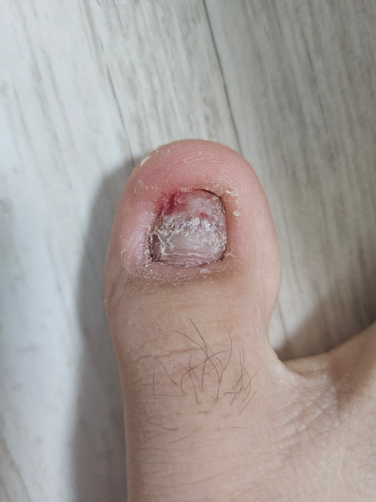 치료만 가능하면 뽑기라도 할텐데... 2년 전부터 이랬는데 치료 가능성이 없나요? 윗부분은 딱딱한 발톱인데 파고들고있고 밑에 부분은 발톱이 아니라 껍데기 느낌으로 감싸고만 있어요