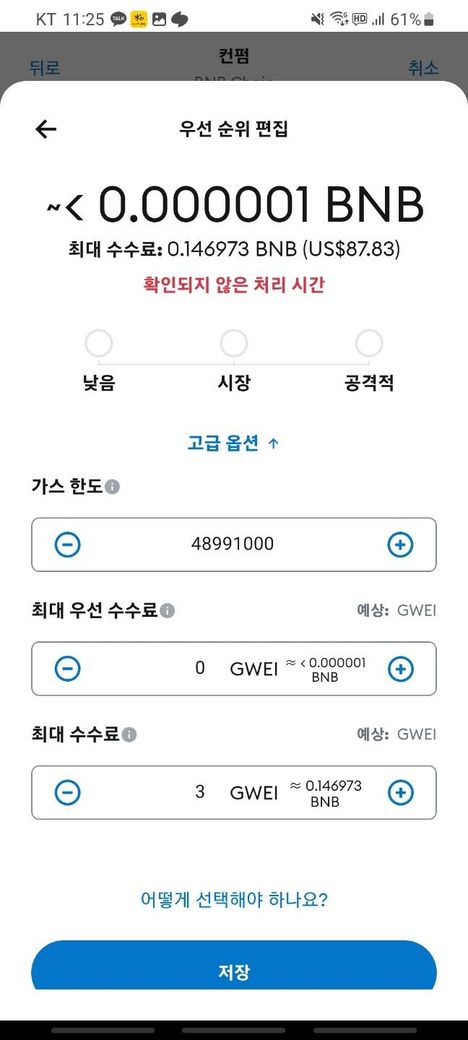 가스비가 너무 비싼데 어떤걸 건드리면 가스비가 줄어들까요.? ㅠㅠ 메타지갑에 코인이 있는데 옮기려고 하니 가스비가 너무 많이 드네요.. 비앤비체인 입니다
