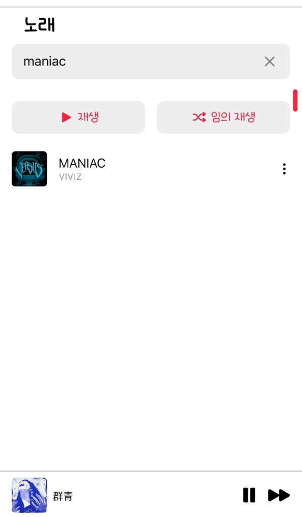 첨부한 사진처럼 제가 재생하고자 하는 노래는 위에 매니악이라는 곡인데, 누르면 다른 곡이 재생되어 불편합니다. 혹시 이러한 증상을 경험해 보신 분이 있다면 어떻게 해결할 수 있을까요?