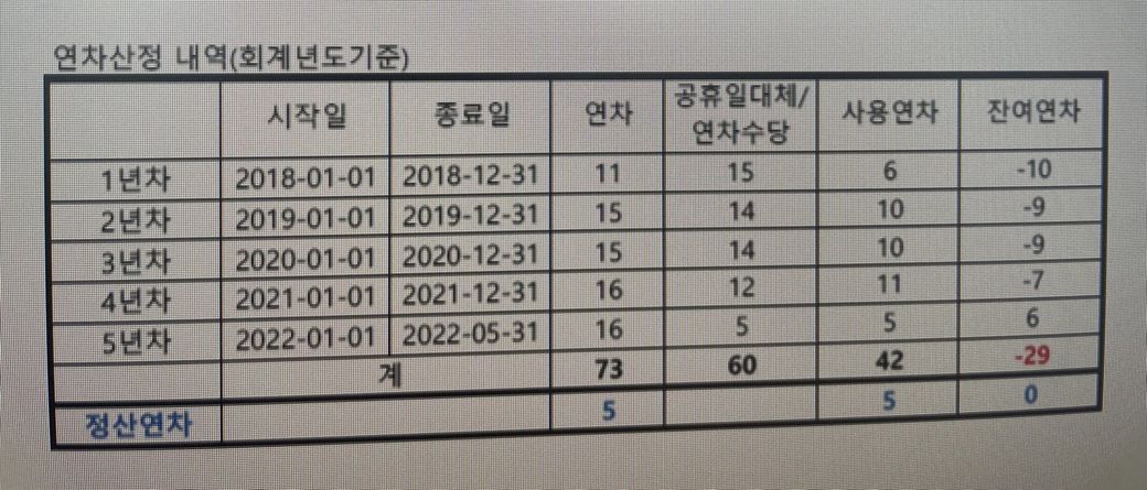 근데 제가 이번에 퇴사하려고 하니, 저에게 잔여연차가 원래는 마이너스라고 하는 겁니다.