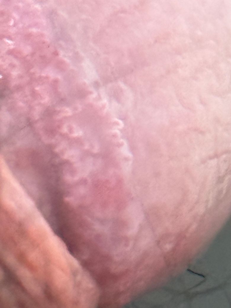 곤지름일지 진주양구진일지 모르겠네요... 진주양구진이라고 병원에서 진단 받긴 했는데 워낙 작은 병원이였어서... 알려주세용 헤르페스는 아니겠죠
