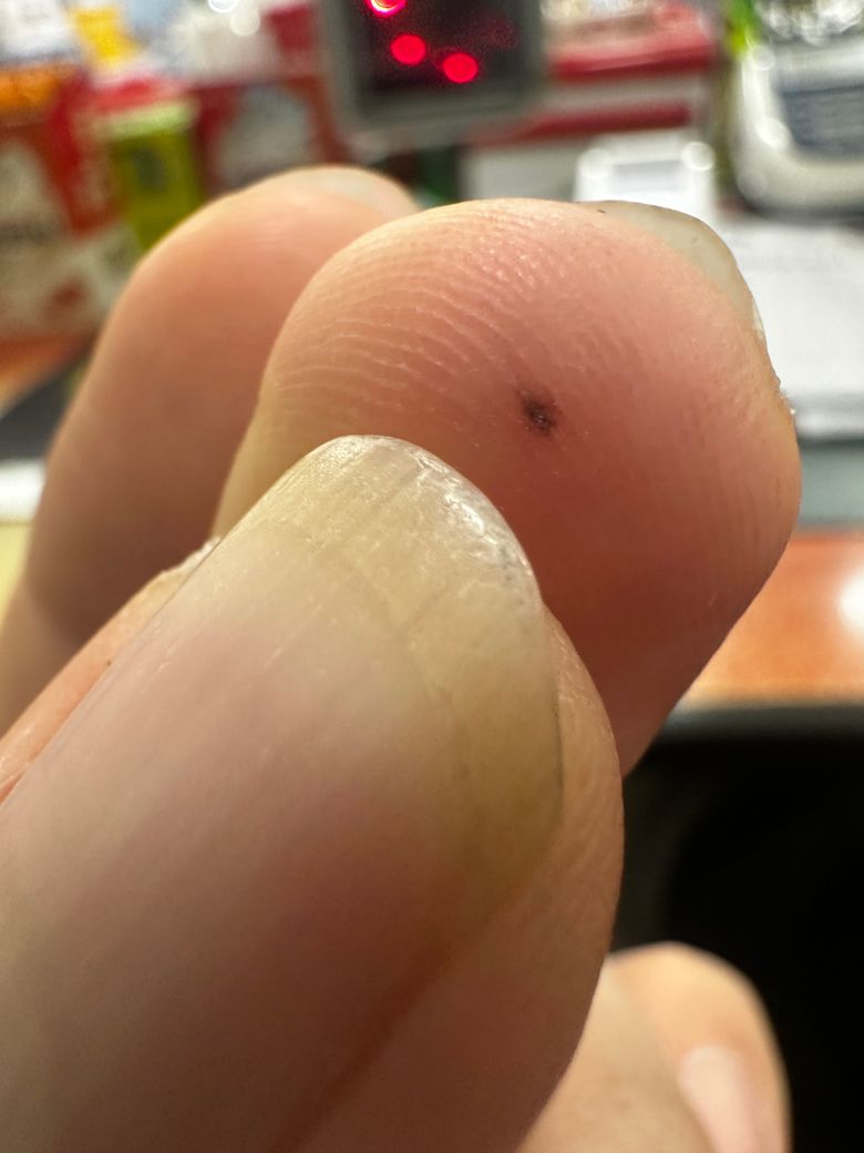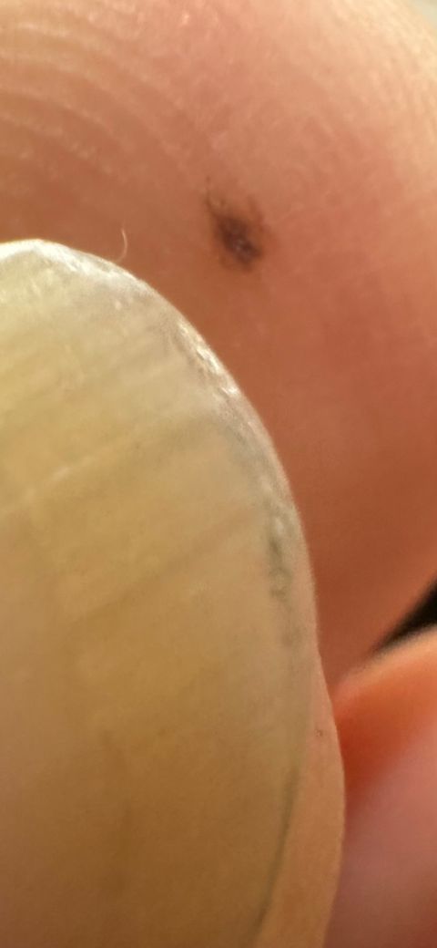 가운데 손가락 지문에 검은색 점이 생겼습니다