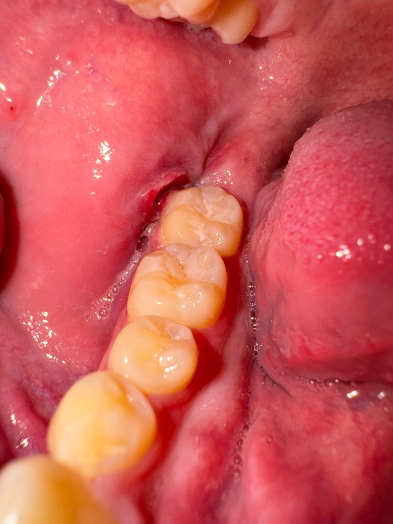 사랑니 뽑은지는 10일차구요 어제 치과가서 보니 실밥도 안보이고 구내염이랑 입이 안벌어진다고 하니 감염 의심을 하시더라구요 근데 제가 사진상으로 볼땐 별 이상도 없고 입은 오늘 갑자기 다시 잘 벌려져요 사진상으로 파악이 힘드시겠지만 대충 어떤상황인지 알수있을까요?붓기도 없고 아프지도 않아요