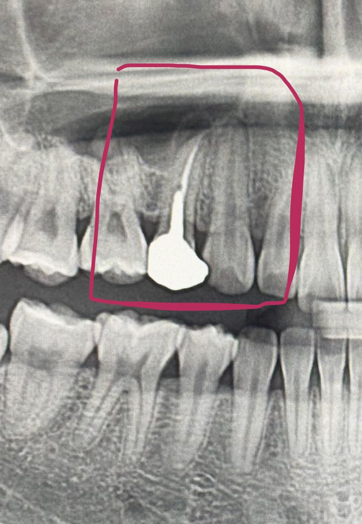 깊은 기둥을 박은 5년전 신경치료 치아에 뿌리 염증이 생겨 치료가 필요해보이는데,