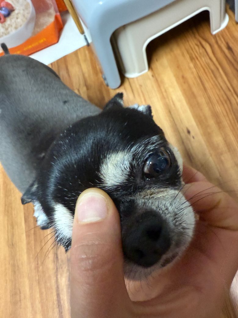 강아지눈안에 검정 검정색으로 저렇게있는데 저게 뭘까요???? 처음보는거라 당황스러운데 수술해야하는건가요?? 답변부탁드립니다ㅠㅠ
