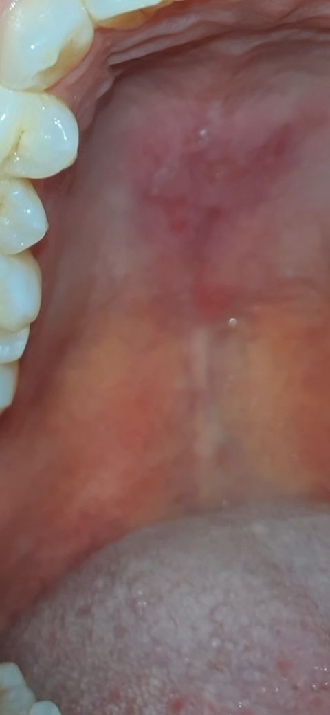 엊그제 입 천장이 엠보싱 처럼 올록볼록 해지더니 헐렀는지 따가워서요