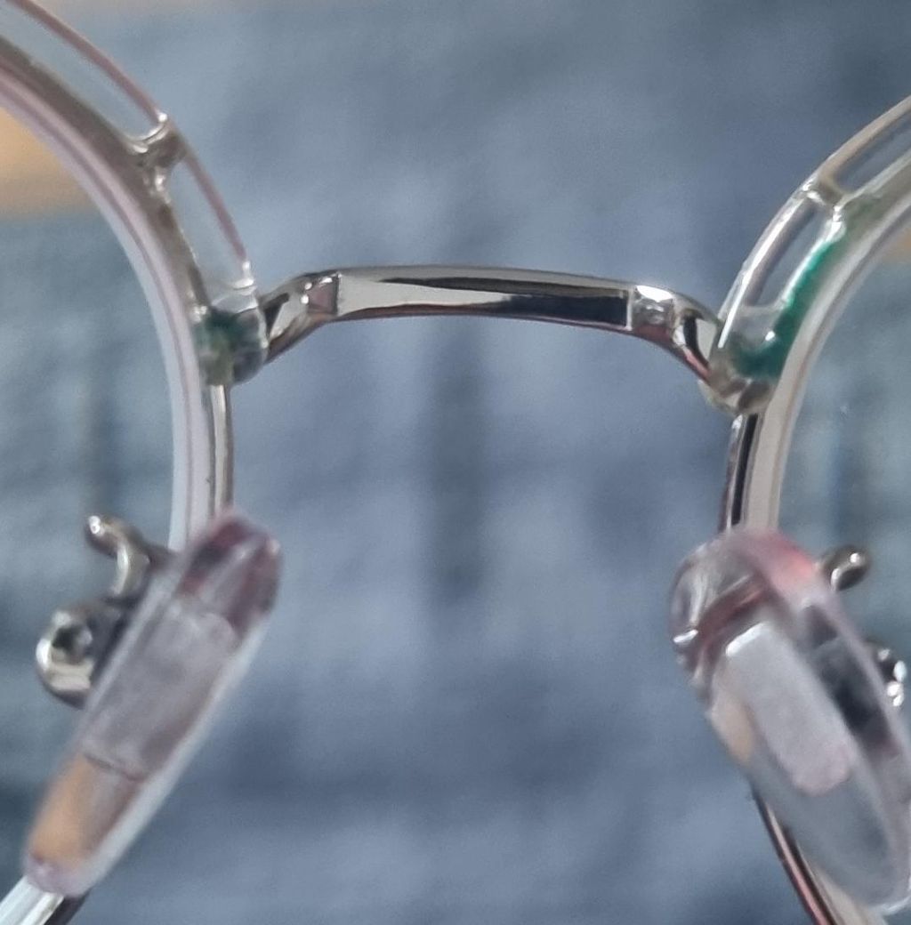 아마 안경틀 속에 들어가 있는 금속 재질에 녹이 슨 것이 아닌가 생각되는데
