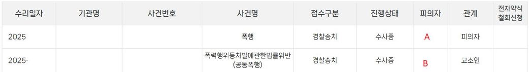 맨 위에 관계 란 에서 B가 고소인 A가 피의자 라고 되있는데