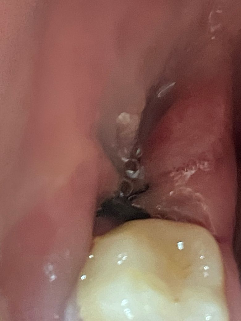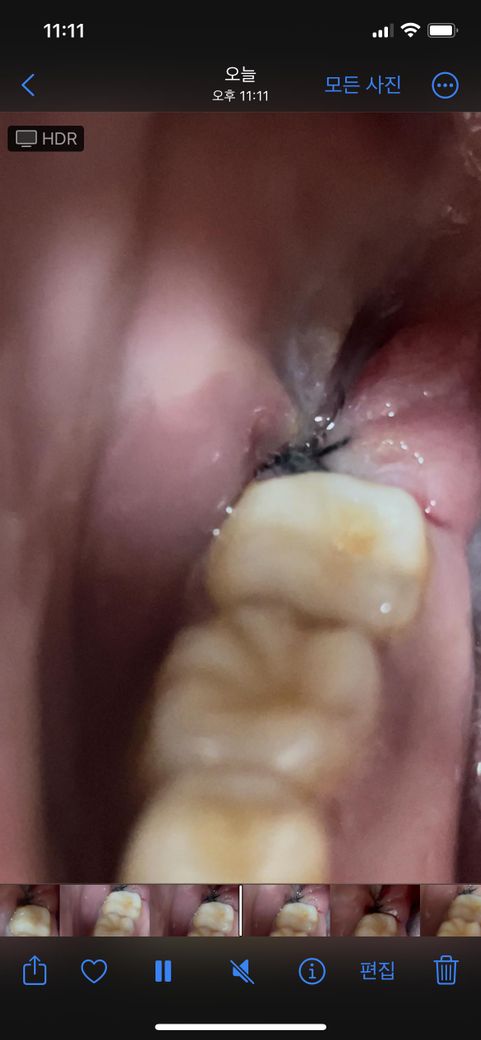 사진상에는 실밥이 잇으신거 같습니다. 일반적으로 위사랑니는 실로 꼬매진 않지만 아래 사랑니는 꼬맵니다.