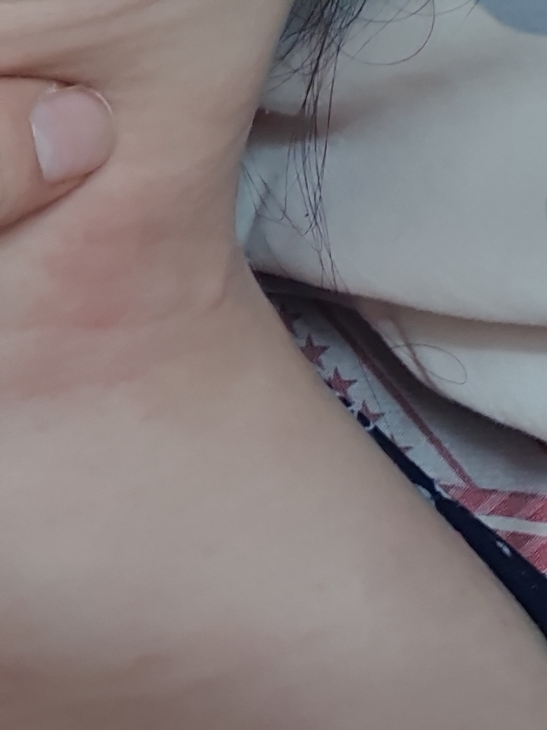사진이 명확하지는 않아요. 임파선 같기도 하고, 주변도 빨갛게 올라온 것 같아서 두드러기일 가능성도 고려해 봐야 될 것 같습니다. 불편하시다면 근처 병원에 가서 재확인을 권유드립니다.