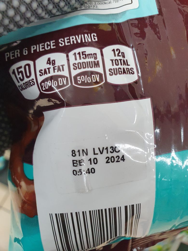 과자뒷면에 BB 10 2024 이라고 적혀있으면 10월 말까지입니다. 그러니까 2024.10.31까지가 유통기한입니다.