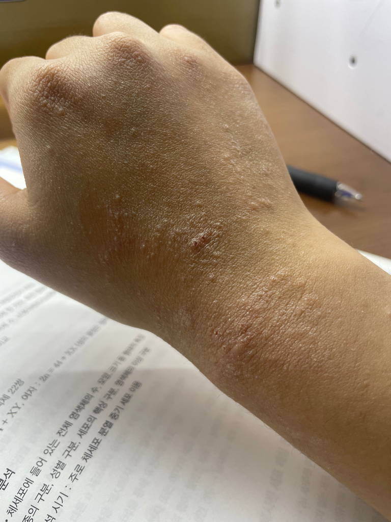 알러지가 국소적으로 한곳에서만 난다면 접촉알러지나 긁어서 발생한 알러지 같습니다. 연고바르면서 지켜보셔도됩니다.