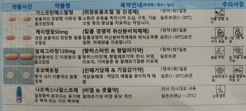또한 알레그라와 뮤코펙트는 식전, 식후가 약효에 별로 영향을 끼치는 성분은 아니고, 속쓰림 등의 위장장애를 유발하는 경우도 거의 없으므로 모두 공복에 복용해도 괜찮습니다