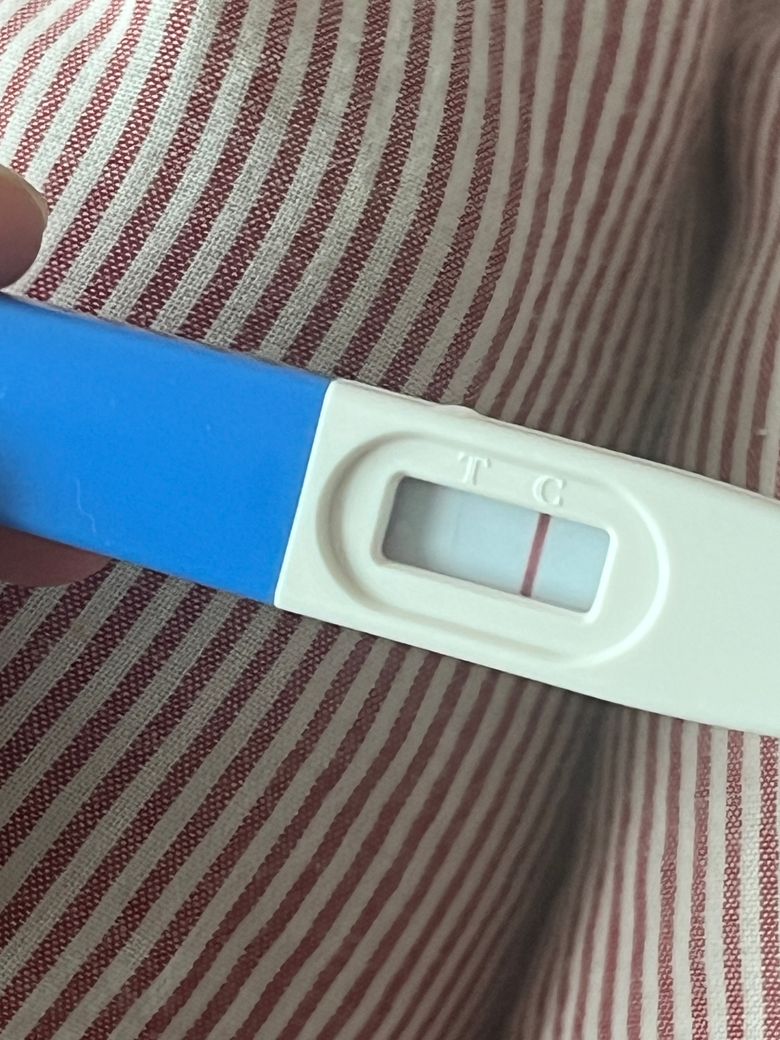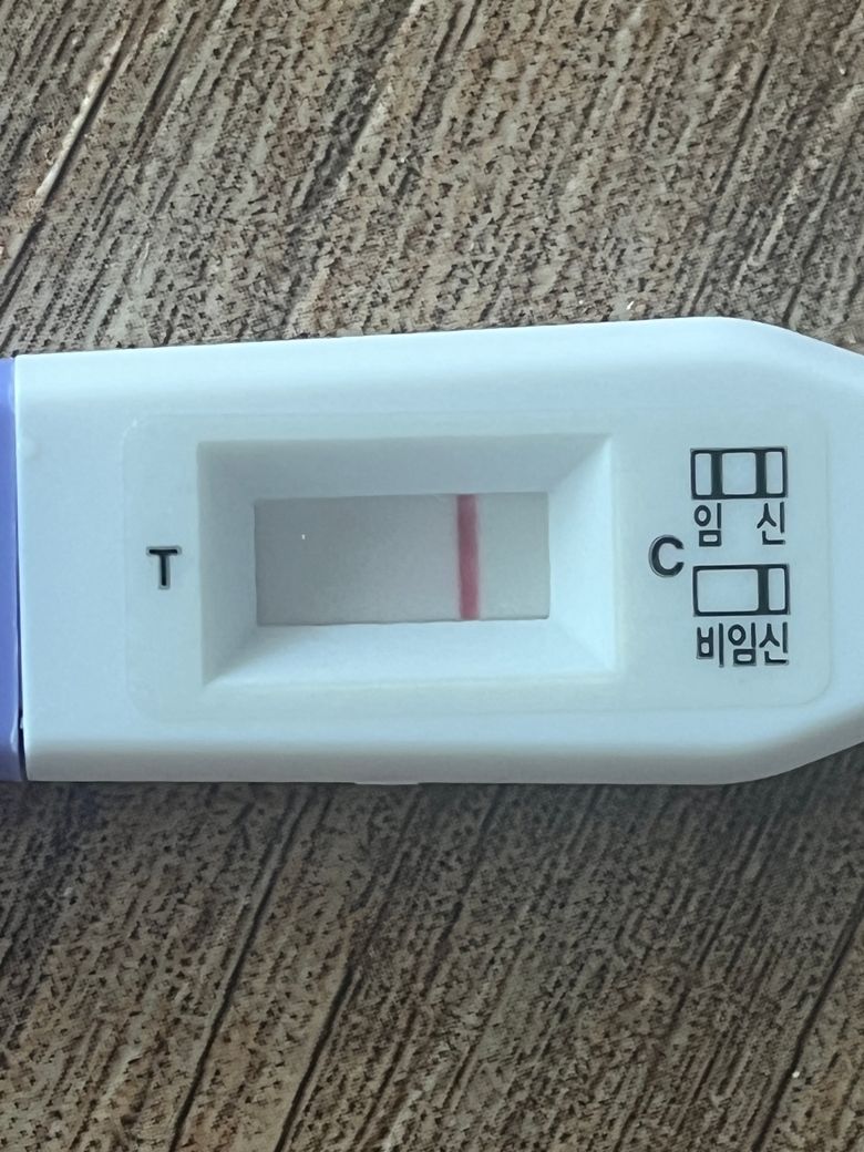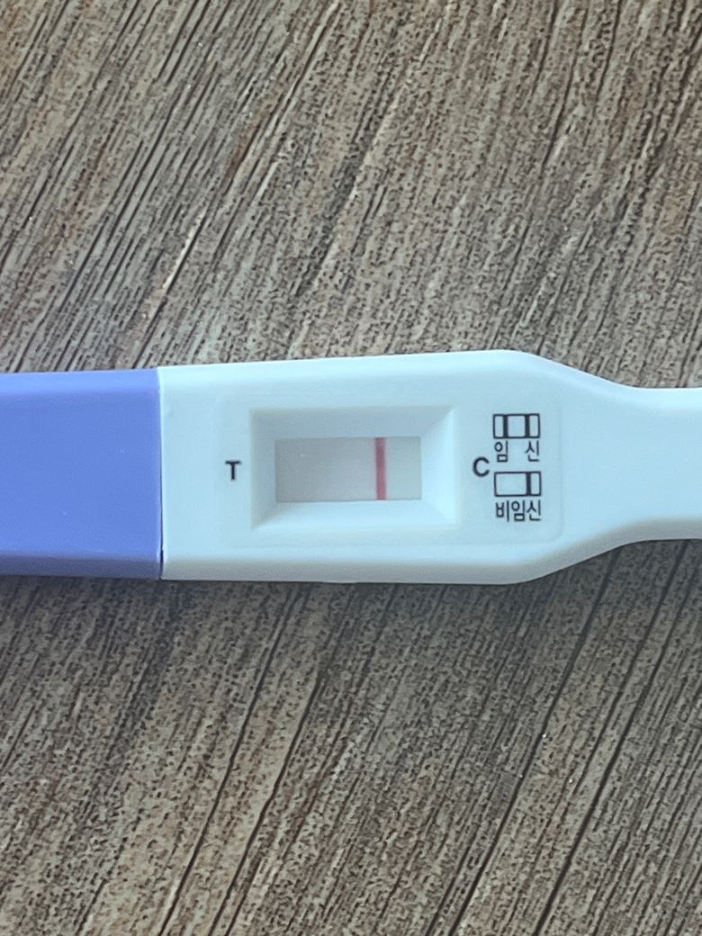 올리신 임신테스트기 사진들 중에 결과가 두 줄로 보이는 사진은 하나도 없어 보입니다. 모든 사진들에서 음성 결과라고 보이는 소견들입니다.