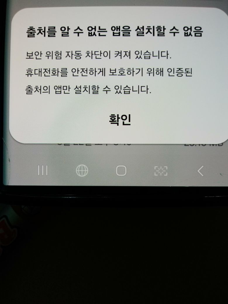 출처를 알 수 없음 이라 나타나는 앱은 가급적 설치하지 않길 권고드립니다만