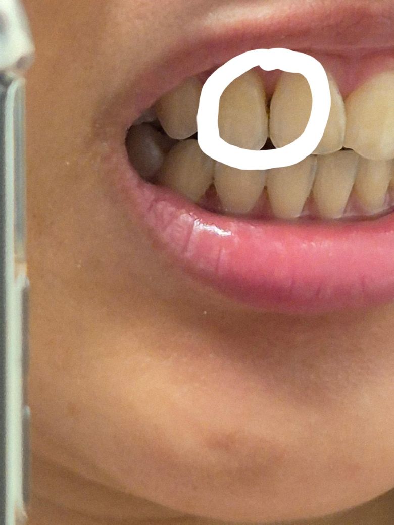 치아는 뿌리부분으로 갈 수록 점점 얇아지기 때문에 잇몸이 내려가다보면 블랙트라이앵글은 어쩔 수 없이 생깁니다. 하지만 블랙트라이앵글이 있다고 해서 무조건 이가 시린 것은 아니고, 치아가 예민해져있거나, 치아에 마모 또는 파절, 균열, 충치등이 있을 때도 이가 시릴 수 있고 복합적으로 작용하기도 합니다. 일단 이가 시릴만큼 잇몸퇴축이 심해보이지는 않는데, 치약만 닿아도 시릴 정도로 불편하시다면 치과방문해서 어떤게 원인인지 확인해보시는게 좋아요. 또 사진으로 봤을 때 한쪽 작은 앞니에는 충치도 있어보여서 겸사겸사 치과 다녀오세요.